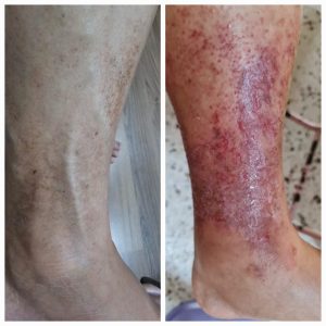 Customer had a bad fall, treatment was given using Bioresonance Therapy to heal inflammation and clear any bacteria or fungus in the leg. Then Bioptron light therapy to heal the wound fast , reduce pain and scar.